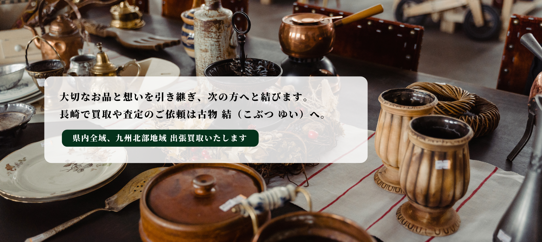 古物 結(こぶつ ゆい)は、長崎を拠点に古美術・骨董から暮らしの道具まで幅広くお買取りしています。